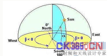 太阳在天空中的位置可以由太阳高度角和太阳方位角来确定。太阳高度角又称太阳高度、太阳俯仰角,是指太阳光线与地表水平面得之间的夹角。太阳方位角即太阳所在的方位,是指太阳光线在地平面上的投影与当地子午线的夹角,可以近似看作是树立在地面上的直线在阳光下的阴影与正南方向的夹角。太阳方位角和高度角的实时数值可以通过地理经纬度、时区参数利用公式计算出来。