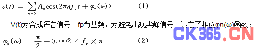 此方式的具体方案是:由于人耳对共振峰的参数中的中心频率敏感,而对幅值和带宽不敏感,所以本文只用共振峰的中心频率和最大幅值两个参数信息来合成语音。