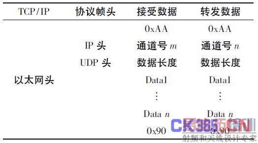 TCP/IP协议具有分层结构,能够实现对以太网数据帧进行打包和解包。UDP在TCP/IP的传输层,提供一种不可靠的数据传输服务,但UDP协议相对简单,比起TCP协议更能够提供实时和快速的数据传输。在正常的运行过程中,该TCP/IP程序模块能够从数据队列中获取串口通信的数据并将数据打包至UDP包中,然后将UDP包发送至IP层,最后形成一帧数据。该帧数据将会通过以太网发送到计算机中。与此同时,该程序模块还将从以太网接收到的数据解包出来,将其中的串口通道号和串口数据发送到SC28L198中去。表1描述了收发一帧数据的格式。