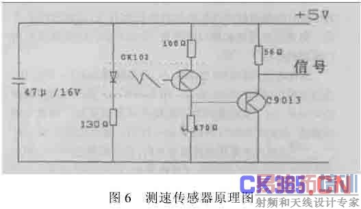 秤信号的变换,秤的测速传感器是带有40槽辊,直径为45mm,每转1圈相当于皮带行走了0.14137m,电器原理图如图6所示。