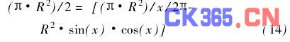 由上面的方程可以求得当料口打开1/2时的2圆相交角x的解。