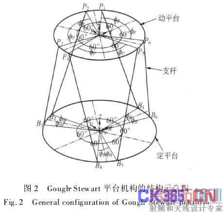Gough-Stewart平台机构由动平台、定平台和连接两平台的6根可伸缩的支杆组成,每根支杆的两端通过球铰或虎克铰与动平台和定平台铰接,具有6个自由度、高精度、高刚度、高稳定性等优点。