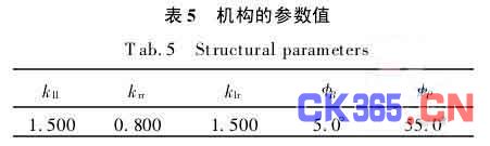 lim满足行程的要求,不作为变量考虑。上述5个结构参数即为设计变量,表示为向量: