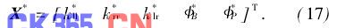 ,K为支杆刚度向量,K=diag(k1,k2,…,k6),ki为支杆i(i=1,2,…,6)的刚度。改写式(4),得: