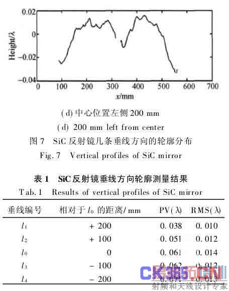 分别得到SiC反射镜表面其他垂线上的绝对面形分布及结果如图7及表1所示: