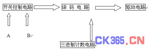 在本设计当中,比较困难的板块就是设计三进制计数器电路,还有控制电路以及它与译码器之间的连接问题是比较繁琐的,我认为在开关A端与译码器端口C连接,并且输出舍去Y3是很巧妙的。还有在译码器与驱动电路的连接中有一个小小的细节,就是按要求左边的指示灯应按左循环的方式闪烁,即是由D2到D0依次闪烁,于是译码器输出端口Y0、Y1、Y2应依次接指示灯D2、D1、D0。