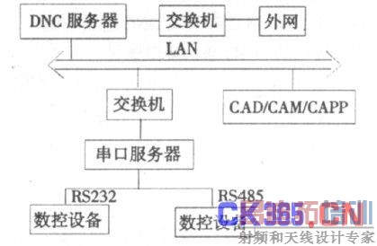 利用数控机床提供的RS232C 或RS485 接口, 采用点对点型或星形拓扑结构, 实现串行通信。这是目前在车间中应用最多的一种通信方法, 但这种通信方法存在工控微机多、投入成本高、管理和维护工作量大和易于出错等缺点。目前使用的数控系统大多带有RS232C 串行通信接口。利用该RS232C 接口可直接实现基本DNC 通信和狭义DNC 通信功能。