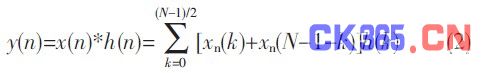 在时域中, FIR滤波器的输入输出过程是一个输入信号与单位脉冲响应进行线性卷积的过程, 其差分方程表达式为: