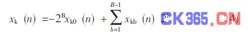 式中, xkb (n) 为二进制数, 可取值为0或1;xk0 (n) 为符号位, 为1表示数据为负, 为0表示数据为正。因此, 将(4) 式代入(3) 式可得:
