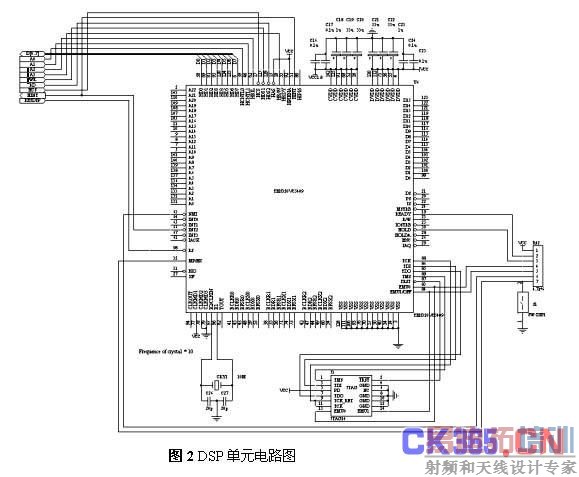 DSP单元将CPU单元通过HPI总线送来的 A/D转换后的原始数据信号进行多种高速运算,运算的结果再通过HPI总线送入CPU单元。DSP单元可以承担信号预处理、信号的检测及分类等实时性要求高、计算量大的算法。这里选用Ti公司TMS320-54系列DSP中的TMS320VC5409[1]芯片。TMS320C54X是为实现低功耗、高性能和低成本而专门设计的定点DSP芯片。TMS320C54X的主要特点包括:
