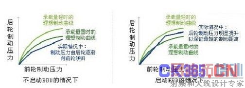 简单点说,就是当汽车制动时,如果四只轮胎附着地面的条件不同,比如左侧轮附着在湿滑路面,而右侧轮附着于干燥路面,那么四个轮子与地面的摩擦力则不同,制动时(四个轮子的制动力相同)就容易产生打滑、倾斜和侧翻等现象,而EBD系统则会在此时及时调整每个轮胎的制动压力,从而确保车辆能够有效、平稳的减速。