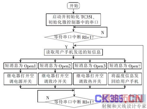系统的软件模块部分主要包括GSM 通信模块、DS18B20 温度采集模块和继电器开关控制模块部分的软件设计, 系统的工作流程如图6 所示。