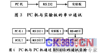 实验2 首先通过RS232接口将PC机1与实验板1连接,将232电平转换为TTL电平,然后通过RS485接口把TTL电平转换为485电平并连接到实验板2上,再通过RS232实现与PC机2的串口通信。
