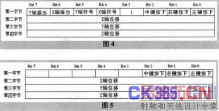 按照标准的三键鼠标的数据包有效数据为3个字节,如图4所示。