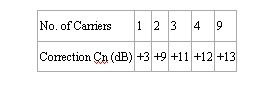 其中, Ptot=所有载波的总输出功率,以dBm为单位,OIP3=器件的OIP3,以dBm为单位,ACLRn="n" 载波的ACLR , 以dBc为单位,Cn=上述表中的值。