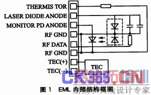 EML激光器的输出波长、电流阈值、最大输出功率和最小功率的波动都直接受工作温度的影响。同时,光源的啁啾声受限于光通道的最大允许色散,虽然光纤放大器可延长信号传输距离,但色散值随传输距离的线性累积与光纤放大器无关,因此只能对光源的啁啾提出很苛刻的要求。使用直接调制激光器远远满足不了系统对光源性能的要求,就目前技术而言,最简单的方法是使用带温度控制的电吸收激光源。