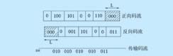 这种新型rvlc是通过对正向和反向的vlc码流进行异或操作来构成的。下面通过一个例子对这种新型rvlc进行说明:即一个5 个符号的集合{a,b,c,d,e},其各个符号出现的概率为{1/2, 1/8,1/8, 1/8, 1/8},那么对该集合进行编码的vlc码表为{0,100,101,110, 111},其传输的符号流为“abcaad”,而编码器生成的vlc码流为0/100/101/0/0/110,为了得到可双向解码的码流,编码器首先将每个码字翻转,组成反向码流;随后编码器在正向码流之后及反向码流之前插入l个0( l必须大于或等于vlc码字的最大长度);最后,编码器将正向码流和反向码流进行异或操作,即可得到可双向解码的码流,如图5所示: