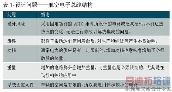 由于竞争的压力和对最佳战斗性能无止境的追求,军用航空电子从简单、独立的设备发展到如今以每秒百万位乃至更快的速度交换信息的高级智能系统网络。这也带来了必须克服的许多设计问题(见表1)。