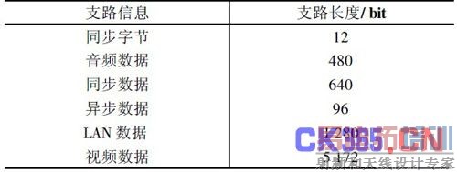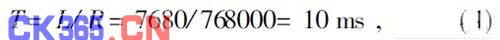 根据表1 可以计算出每帧的帧长L 为7 680 bit,线路速率R 为768 kbps 时,帧周期T 为: