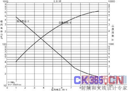 3.根据求出的C,查变容二极管C/V变换图,找到对应的电压V,即为二极管的反向控制电压(DF输出),