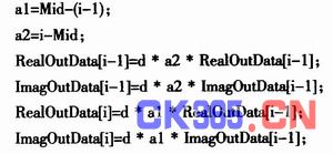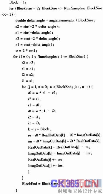 其中,Block是每一个蝶形单元输入个数的一半即N/2,r0和i0分别是旋转因子的实部和虚部。