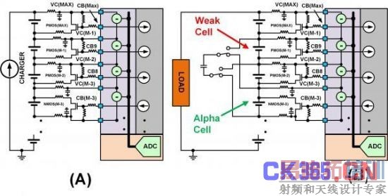 图 SEQ Figure * ARABIC 3:此图显示了不同类型的单电池平衡:(a)使用旁路单电池平衡FET来减慢单电池在充电周期的充电速度。(b)在放电周期内使用主动平衡从强单电池“偷取”电荷并将该电荷给予弱单电池。