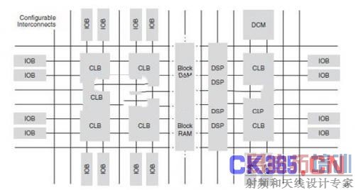 如图1所示,FPGA主要由逻辑控制块(CLB)、输入输出控制块(IOB)和内部连线三大部分组成,同时芯片内部集成块状存储器(BlockRAM)以及数字信号处理单元DSP以满足高速数据处理应用环境的需求。
