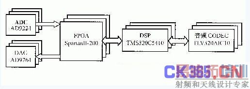 就目前器件的发展水平,要想实现完全的射频数字化,几乎还不太可能,所以研究的重点往往放在中频数字化上。根据上面的分析,中频数字化中基带信号处理部分由于处在较低速率上,一般采用通用DSP方案实现,通过软件来实现各种功能;而对于数字变频部分,它们过高的速率使得通用DSP无能为力,即使像运算速度已高达600 MHz的TMS320C64X也不能解决数字中频的处理,所以,如何解决A/D采样后高速信号的处理,依然是中频以下软件无线电的关键。目前,人们已经提出了一些解决关键元器件的方法,并已出现了大量的数字中频产品,尤以Harris公司和Gray公司为代表,像Harris公司的可编程数字上/下变频器 HSP50415、HSP50216等都为软件无线电的实现奠定了良好的基础。同时,在另一方面,由于FPGA技术的迅速发展,超大规模、高速度的 FPGA芯片不断出现,特别是像Xilinx公司的SpartaNII、VirtexII具有独特的快速逻辑进位、DDL功能,为实现高速数字信号处理提供了可能,这种FPGA加DSP的设计方法为实现软件无线电提供了一种更加灵活的方案,本文的重点正是研究FPGA技术在软件无线电中的应用。