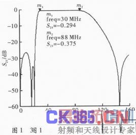 设计一个9阶30~88 MHz大功率带通滤波器,其指标要求为:频段范围30~88 MHz;承受功率为100 W;在30~88 MHz频段内插入损耗<0.7 dB;带内波动<0.3 dB;带外抑制>25 dB。