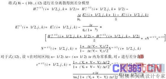 分析可知,在空间各网格中,高功率微波电场的变化造成等效电场、电离频率以及碰撞频率的变化,引起了电子浓度和电子速度的变化,最终又影响到电场,这是一个自作用的过程,所以在FDTD的迭代计算中要不断更新各网格中的电离频率、碰撞频率、电子数密度、电子速度、等效电场以及电磁场等参量。