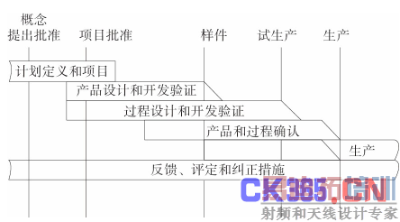 在产品质量前期策划(advancedproductqualityplanNIng,简称APQP)过程中,新产品研发过程一般由5个阶段组成:计划定义和项目、产品设计和开发验证、过程设计和开发验证、产品和过程确认,以及反馈、评估和纠正措施,APQP进度图如图1所示。