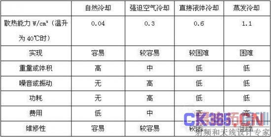 按传热机理,有自然冷却、强迫空气冷却、直接液体冷却;蒸发冷却;热电致冷;热管传热等散热方式。