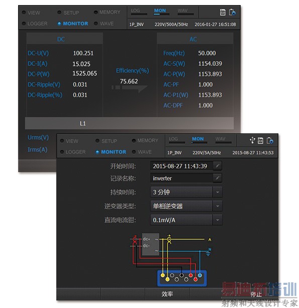 随着新能源的快速发展,如光伏发电和风力发电,逆变器的使用量也在逐步增长,逆变器的转换效率是衡量逆变器优劣的重要参数。E6500支持逆变器测量,支持单相和三相逆变器,直观展示直流、交流电压、电流、功率及转换效率,为逆变器的验收、巡检的不二选择。