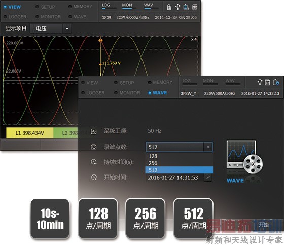E6500支持128点/256点/512点无缝隙录波,无缝隙记录电压、电流原始波形,最长记录时间长达10分钟。并可导出到PC进行二次分析。任何微小的波形畸变均可捕获,最大程度上记录电网的真实状态。