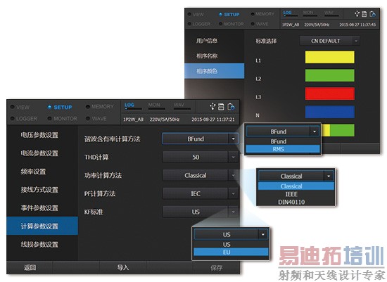 不同国家及地区的电能质量标准并非完全一致,存在少量的差异。E6500在显示、算法上进行了多元化支持,如同时支持50Hz和60Hz工频电网,相序名称及颜色可设,THD可选40或50次等。