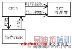 液晶屏分辨率为272×480,尺寸为4.3英寸。显示色彩为16位,RGB各占6位、5位、6位,采用3.3V电压供电。CPLD上外挂一片16×256kB的SRAM作为显示屏的显存,存储一帧屏显的数据。CPLD将DSP总线上传来的数据,先存入显存,然后再从显存中读取出来,配合液晶屏驱动时序,在液晶屏上将波形显示出来。图5为液晶控制图。
