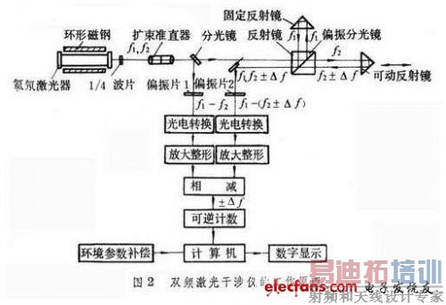 式中λ为激光波长(N 为电脉冲总数),算出可动反射镜的位移量L。使用单频激光干涉仪时,要求周围大气处于稳定状态,各种空气湍流都会引起直流电平变化而影响测量结果。