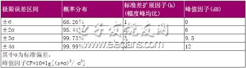 如果对高斯白噪声进行足够时间的测试和统计,峰均比K约为10dB(99.8%概率)或最大12dB(99.99%概率),如表1所示。