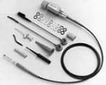 对于板上信号测试的另一种方法是使用套筒或非常小的抓钩。套筒比较适合与直接连接板上的插针,而套筒前面附带的抓钩则可以非常方便地勾在芯片的管脚或针脚上。当然,这种方法由于使用的地线和信号线比较长,在提供方便性的同时也会影响探头的带宽。小的抓钩也可以支持到最小0.5mm 的管脚间距。