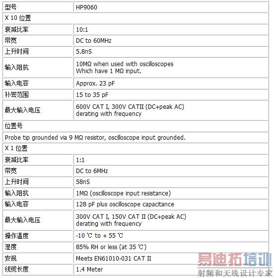 5示波器无源探头的参数 60MHz Switch Selectable x1/x10/Ref Probe