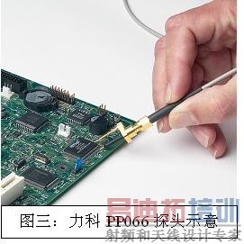 如图三为力科PP066探头,该探头的地与信号的间距可调节,探头的地针可弹性收缩,操作起来非常方便。通过同轴电缆加隔直模块后连接到示波器通道上。