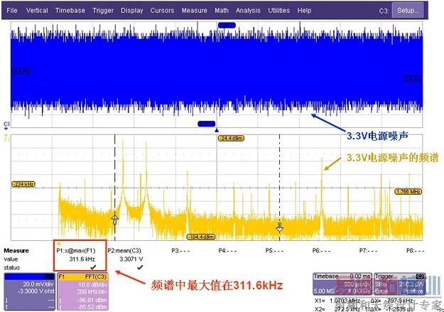 图五:测量某3.3V的电源噪