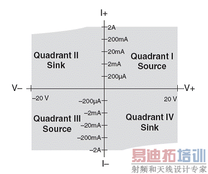 图2. NI PXI-4130 Power SMU通道1的象限图