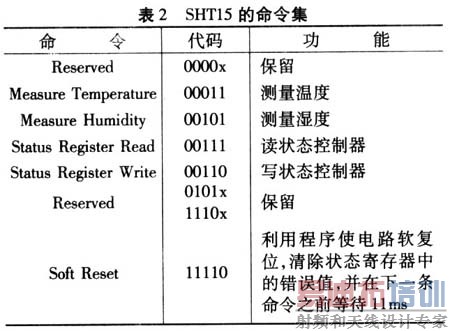 系统软件采用MCS一51汇编语言编写.采用模块化的程序设计方法.主要包括初始化模块、数据采集、数据处理、显示、报警、打印等模块。系统的程序框图如图4所示。由于SHTl5中含有存储器,所以设置初始化程序主要是对单片机和SHTl5的存储器中的一些数据置初值,同时对单片机的初态进行初始化。该系统是多通道的测量系统.SHTl5上电后经过10ms时间就进入休眠状态,只有当单片机发出测量命令后,SHTl5才被“唤醒”而进行工作,所以.单片机循环对各个传感器发出温,湿度测量命令,实现多通道的温,湿度测量。SHTl5的命令集如表2所列。