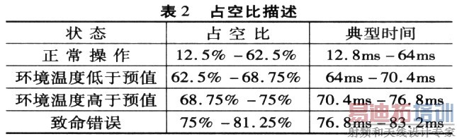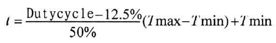 其中:t为测得温度,DutyCycle为t2在时序图中所占的百分比,即t2/总周期T,Tmin为设置的温度下限(出厂设置为-20℃),Tmax为设置的温度上限(出厂设置为120℃)。