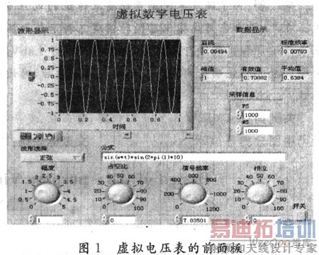 采用虚拟电压表,可将表征交流电压特征的峰值、平均值和有效值集中显示在一块面板上,测量时可根据波形在面板上选择仪表,用户仅通过面板指示值就能对测量结果进行分析比较,大大简化了测量步骤。