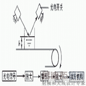 用容积法计量包装的成品,除了对重量有一定误差范围要求外,一般还对充填高度有一定的要求,以保证商品的外观质量,不符合充填高度的成品将不许出厂。图3所示为借助光电检测技术控制充填高度的原理。当充填高度h偏差太大时,光电接头没有电信号,即由执行机构将包装物品推出进行处理。