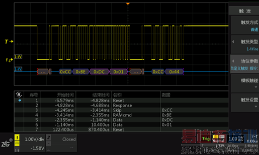 示波器1-wire协议触发