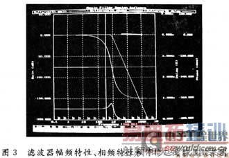 (2) 按[V]键打开窗口;用[T]键选择要查看的选项;[Enter]显示滤波器效果图,查看其幅频特性、相频特性和传输延时特性(见图3)。可以看出,其波形在通带内平直,阻带内陡降,符合对滤波特性的实际要求,并且下降速度可达-80 dB/10倍频频。若效果不理想,必须返回到前面,重新修改参数,直到满意为止;
