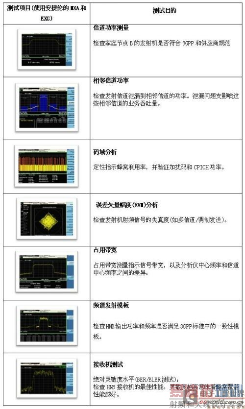 下表对基于3GPP 25.104版本8.5.0 2008-12标准的HNB测试进行了解释。